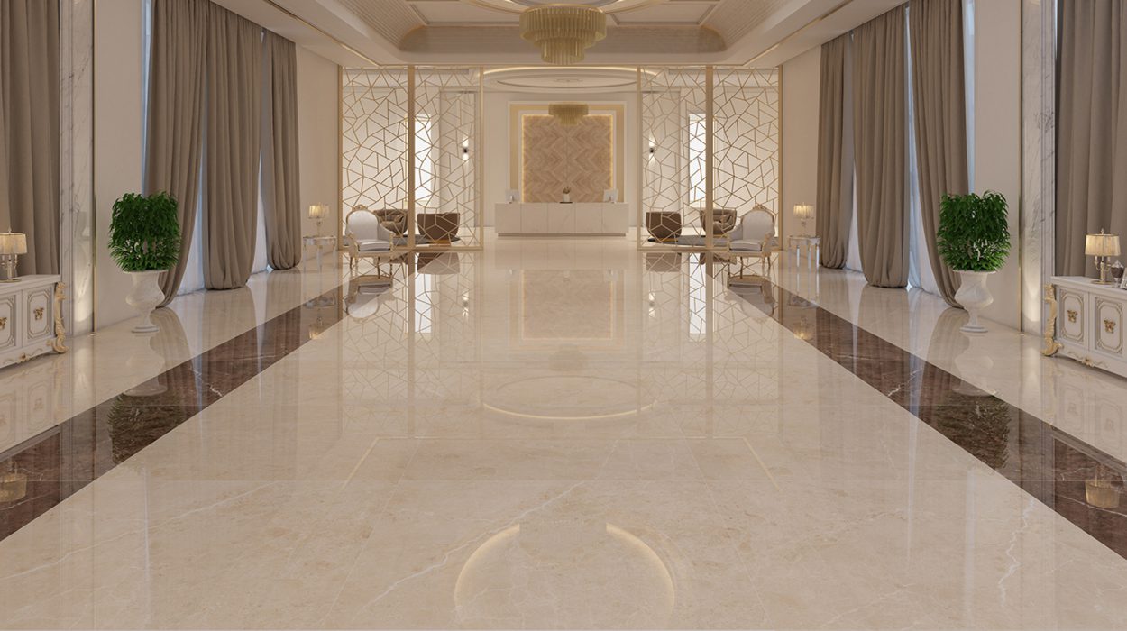 • Large Format Tiles (e.g., 60×120 cm, 120×240 cm): With fewer grout lines, the surface appears more seamless. This uninterrupted plane acts as a more effective reflector of light. It creates a “lake effect” where the light can travel smoothly across the room.